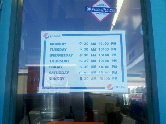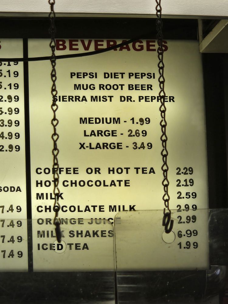 Pepsi, Diet Pepsi, Mug Root Beer, Dr. Pepper, Sierra Mist, Mountain Dew, Orange Crush, Pink Lemonade, Unsweetened Iced Tea.
